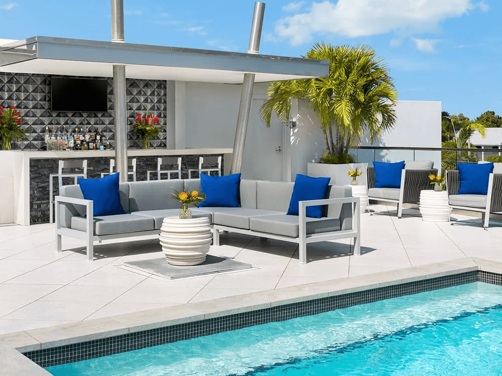 On the rooftop, you’ll find a serene pool reserved exclusively for guests—quiet, warm, and surrounded by Key West’s endless blue skies.